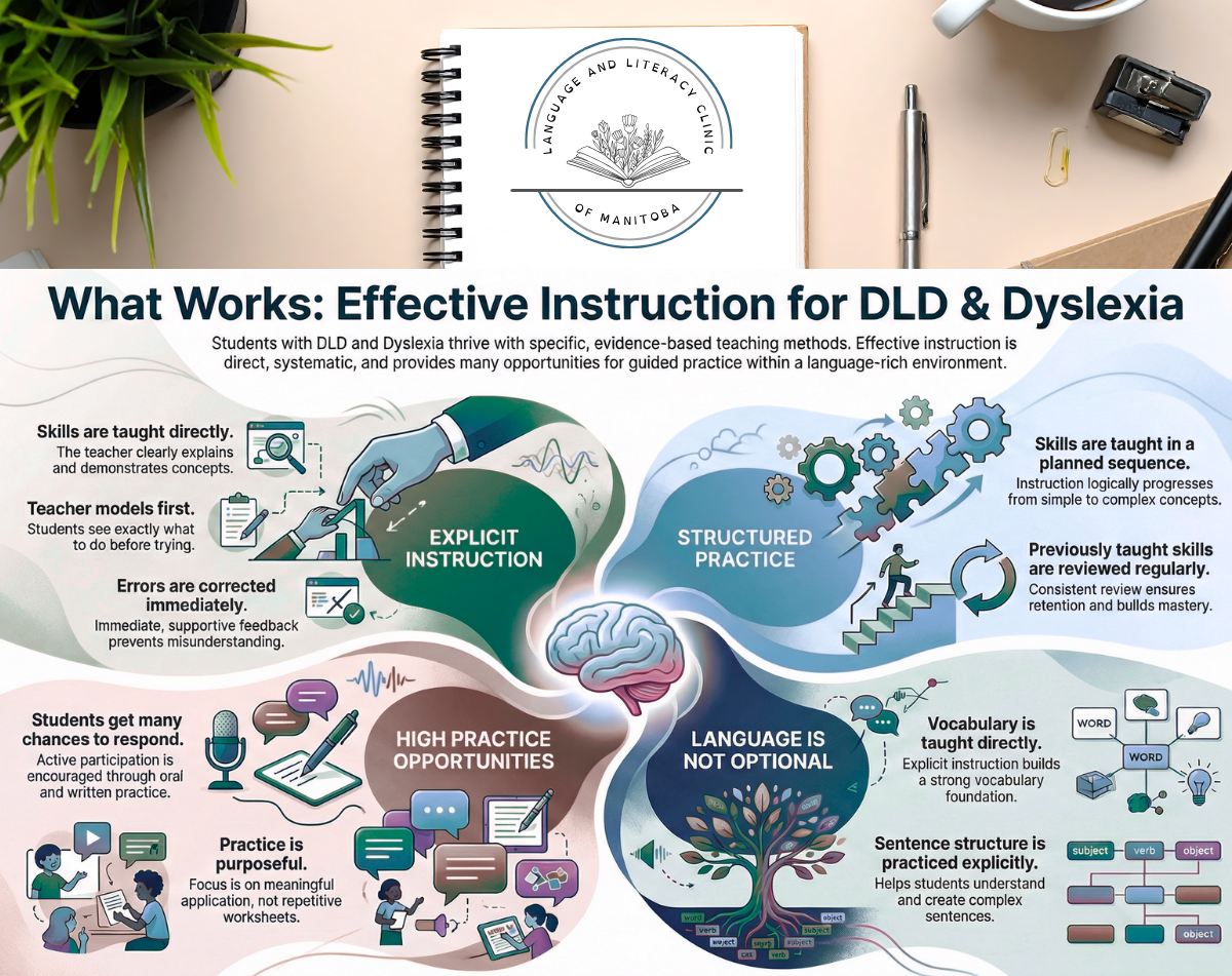 Educators and clinicians often work with students whose reading, writing, and learning difficulties do not fit neatly into a single category. Developmental Language Disorder (DLD) and dyslexia are two of the most common neurodevelopmental disorders affecting academic achievement, and they frequently co-occur. When instruction is not aligned with what we know from research, students are often given broad, inefficient goals (for example, “following directions”) rather than support that targets the underlying language and literacy skills that are actually breaking down.